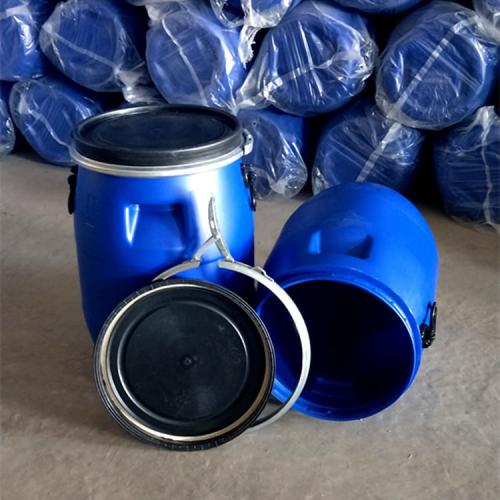 大口蓝色50公斤塑料桶带提手抠手,50kg法兰塑料桶包装,颜色蓝桶黑盖,具有密封性能好、耐冲击、防腐蚀、耐高温、耐低温特点。防泄漏性、硅胶密封圈,不会渗漏,使你的产品受到重重保护。材质HDPE、桶盖材料、蓝桶黑盖、规格370*370*580mm/产品主要技术指标:密封试验:不渗漏。液压实验:不渗漏,不破裂。跌落试验:跌落高度3米,不破裂。堆码试验。